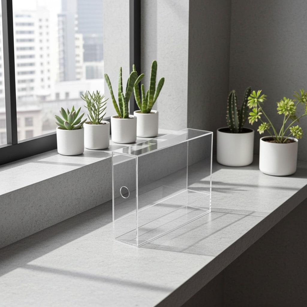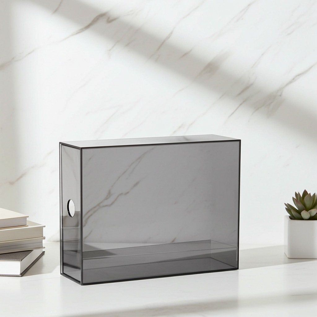 美しい透明アクリル素材で作られており、中身が一目でわかるデザイン。