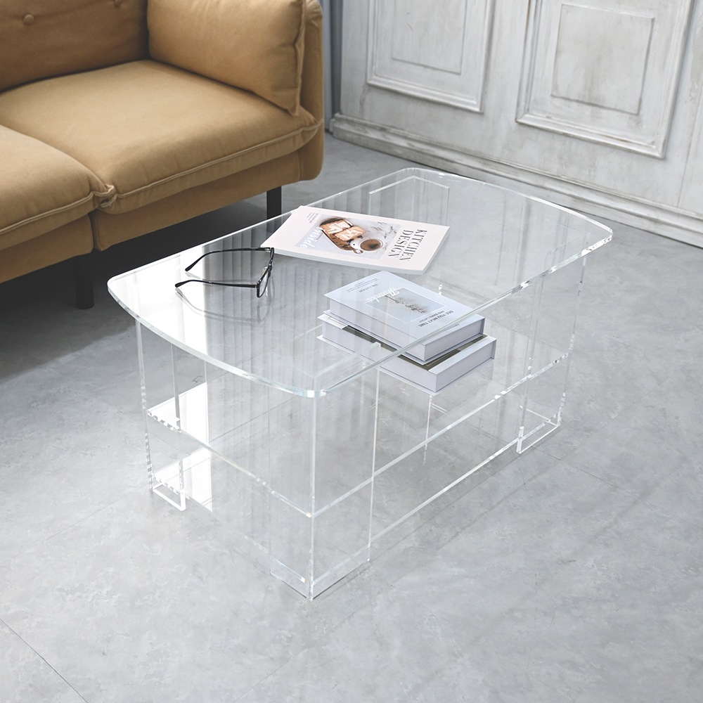 一番上の段にはリモコンや雑誌、下の段には書籍や小物類を収納することができます。透明度の高い素材なので、収納目的だけではなく、推しグッズを飾ってみたりと使い方次第でさまざまな場面で活躍する便利なローテーブルです。
