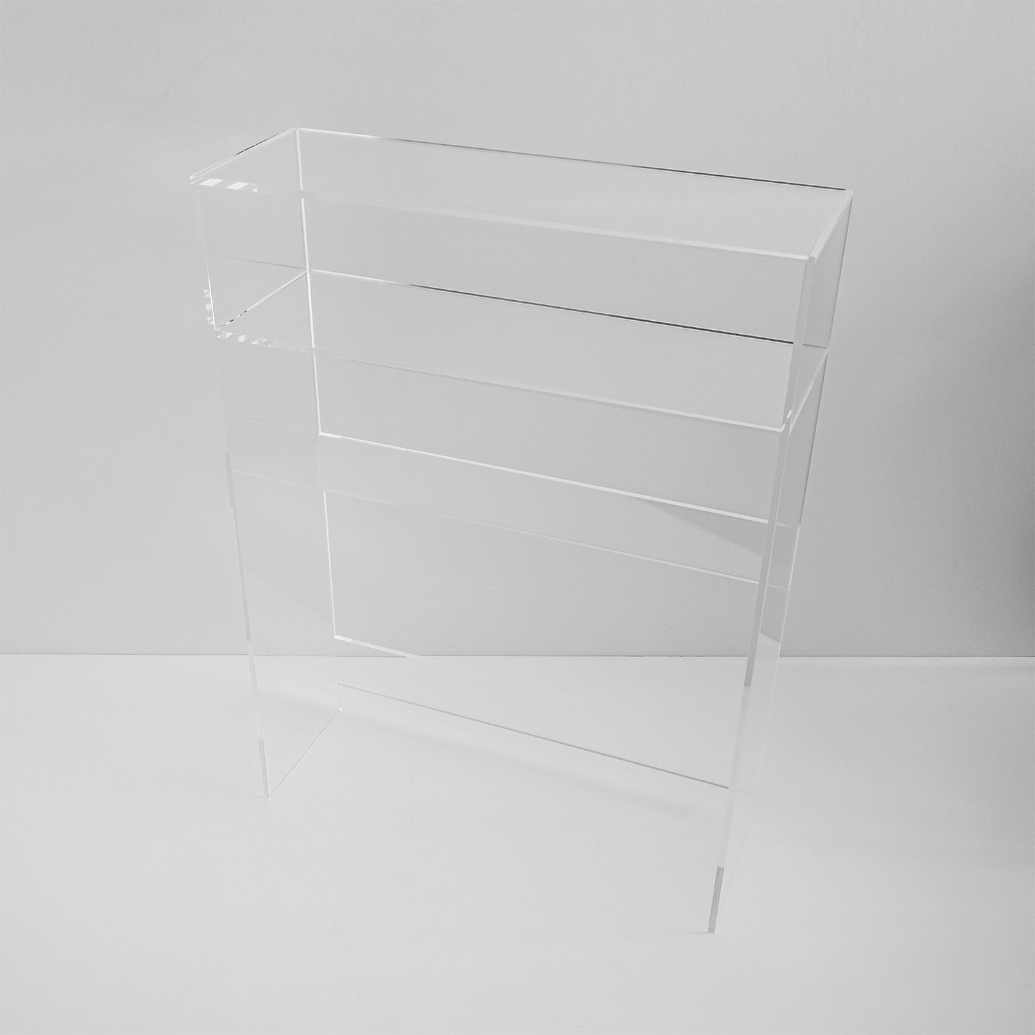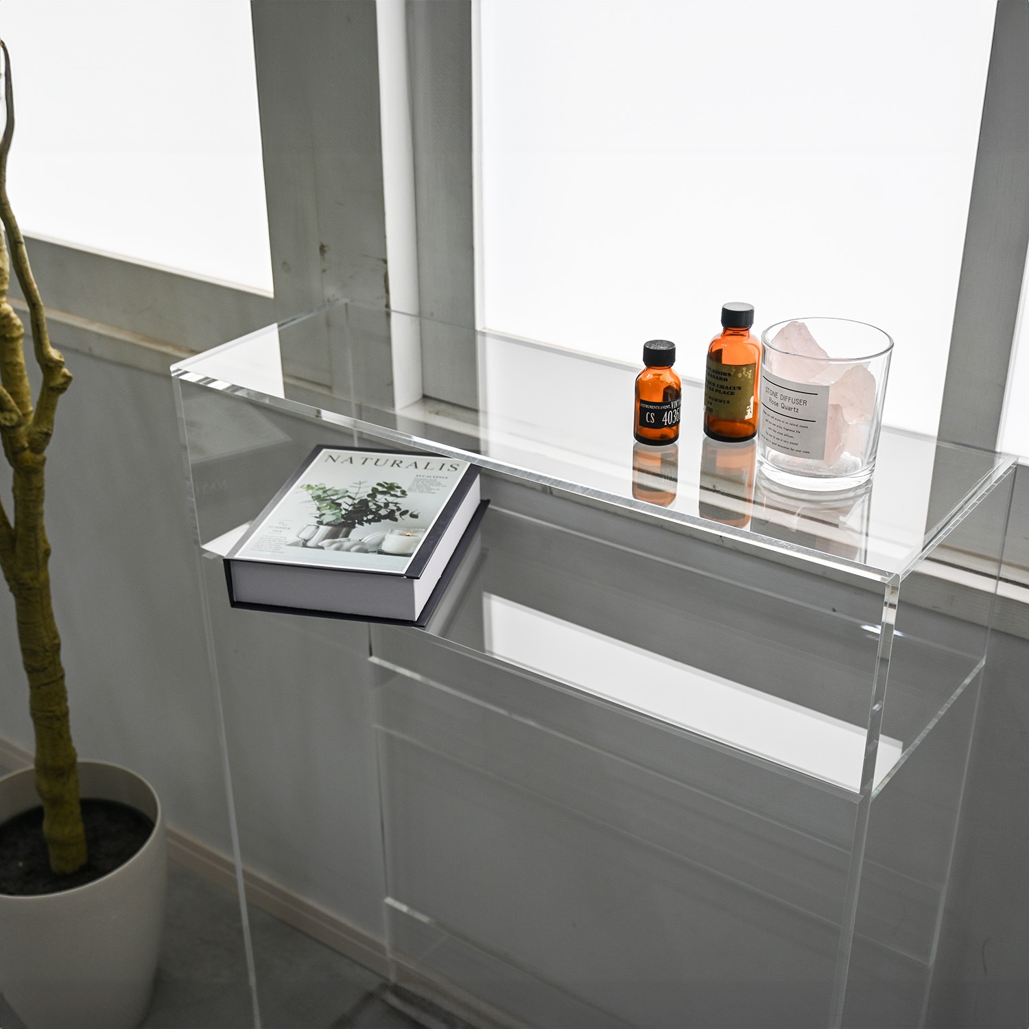 クリアなデザインがお部屋をすっきりと演出する「コンソールテーブル」コンパクトなサイズなので、廊下やリビングの小スペースに最適です。玄関など様々な場所で活躍します。透明な素材がお部屋を広く見せてくれます。