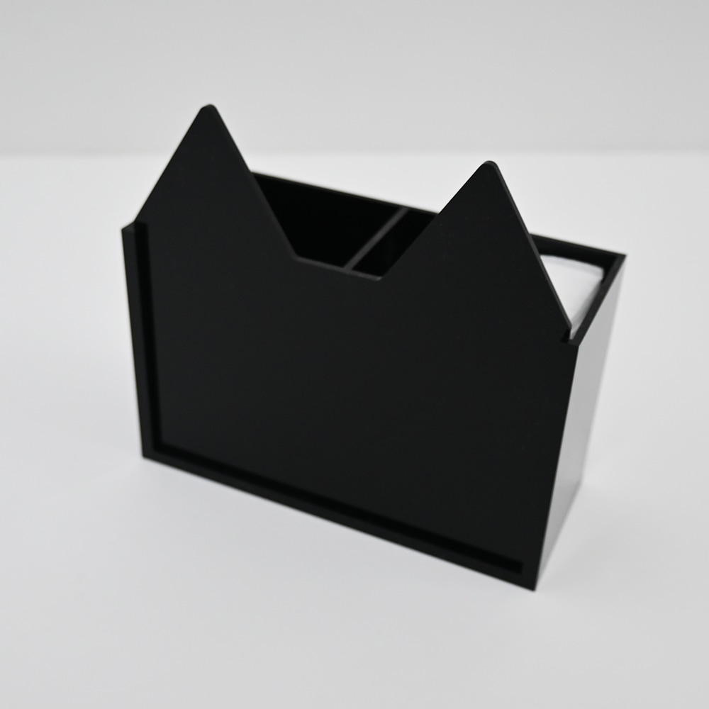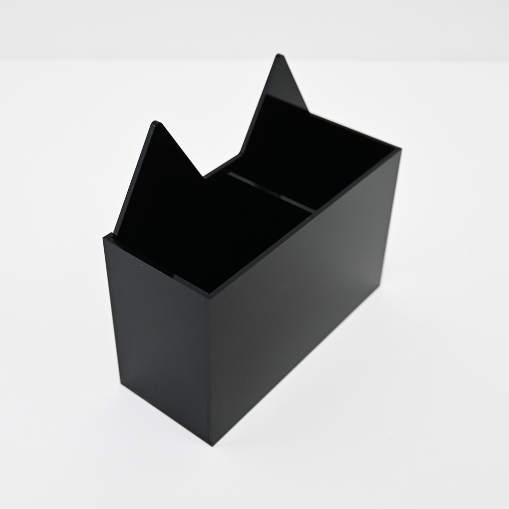 この収納ケースは、前板が愛らしい猫のシルエットになっていて