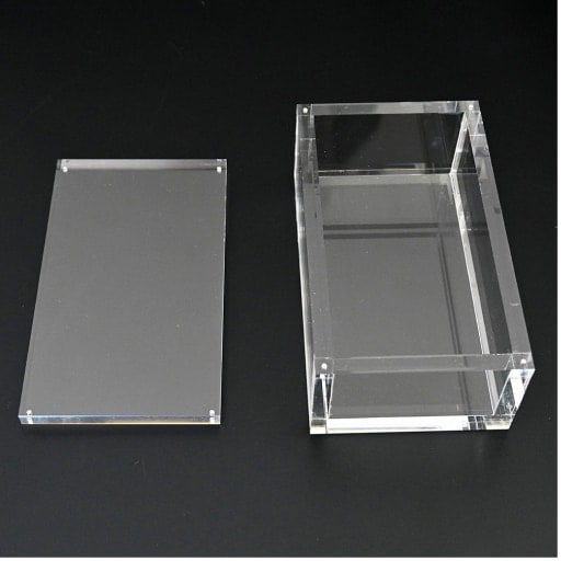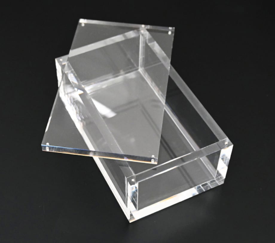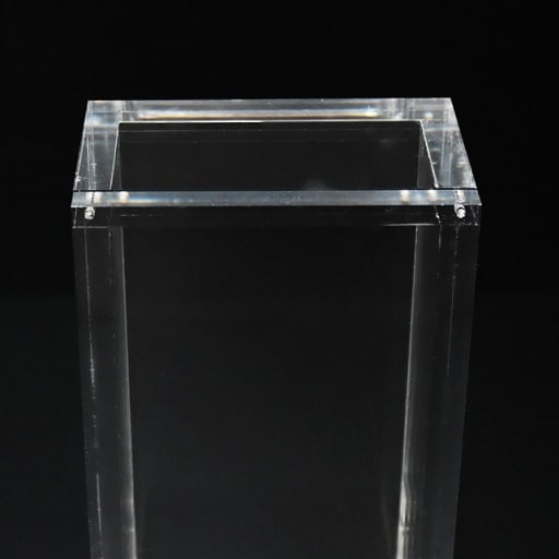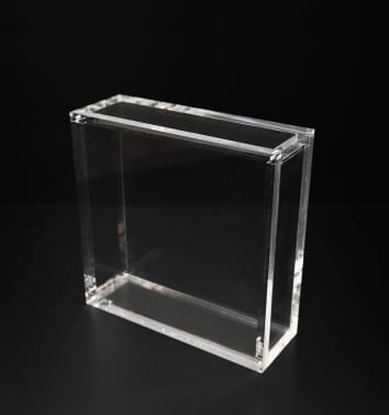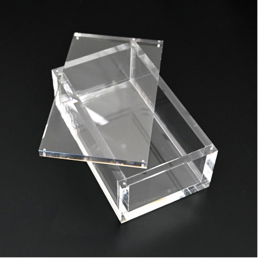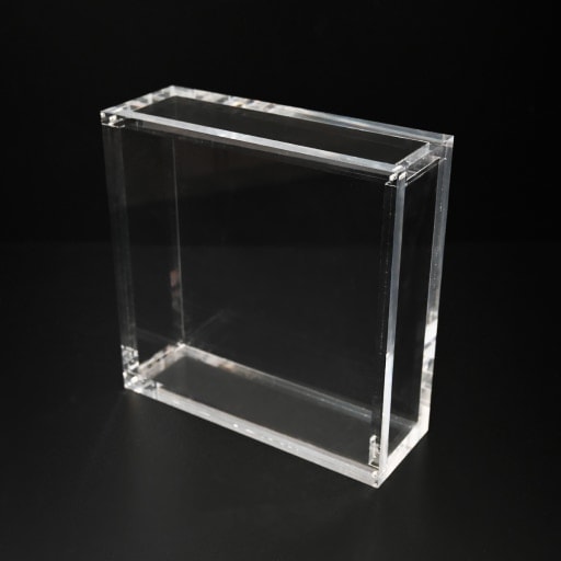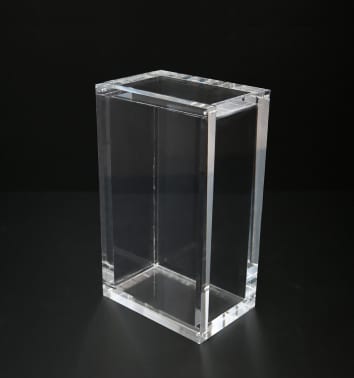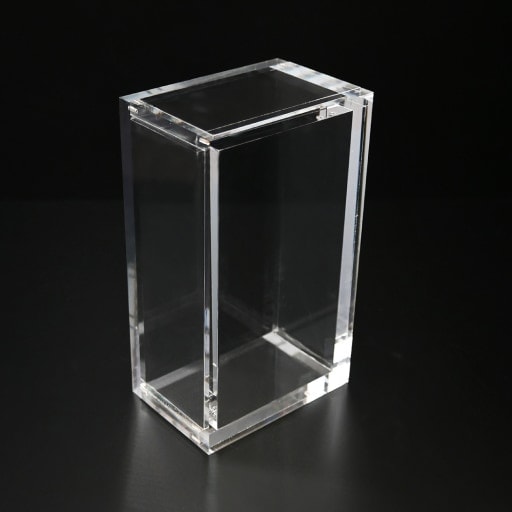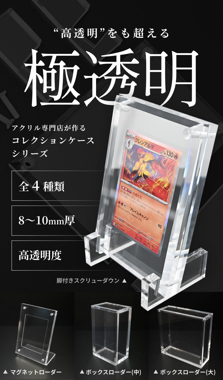 カードボックス専用の収納ケース。収納するだけではなく飾った際に高級感が演出できるように透明度が高く、8㎜と厚めの板を使用。また、日焼けによる変色を軽減・防止するためにUVカット機能も兼ねそろえた特殊なアクリル板となっております。フタはネオジウム磁石で固定していて開け閉めもしやすい仕様となっています。大切なコレクションを長く綺麗に保管しつつ飾りたい方におすすめです。