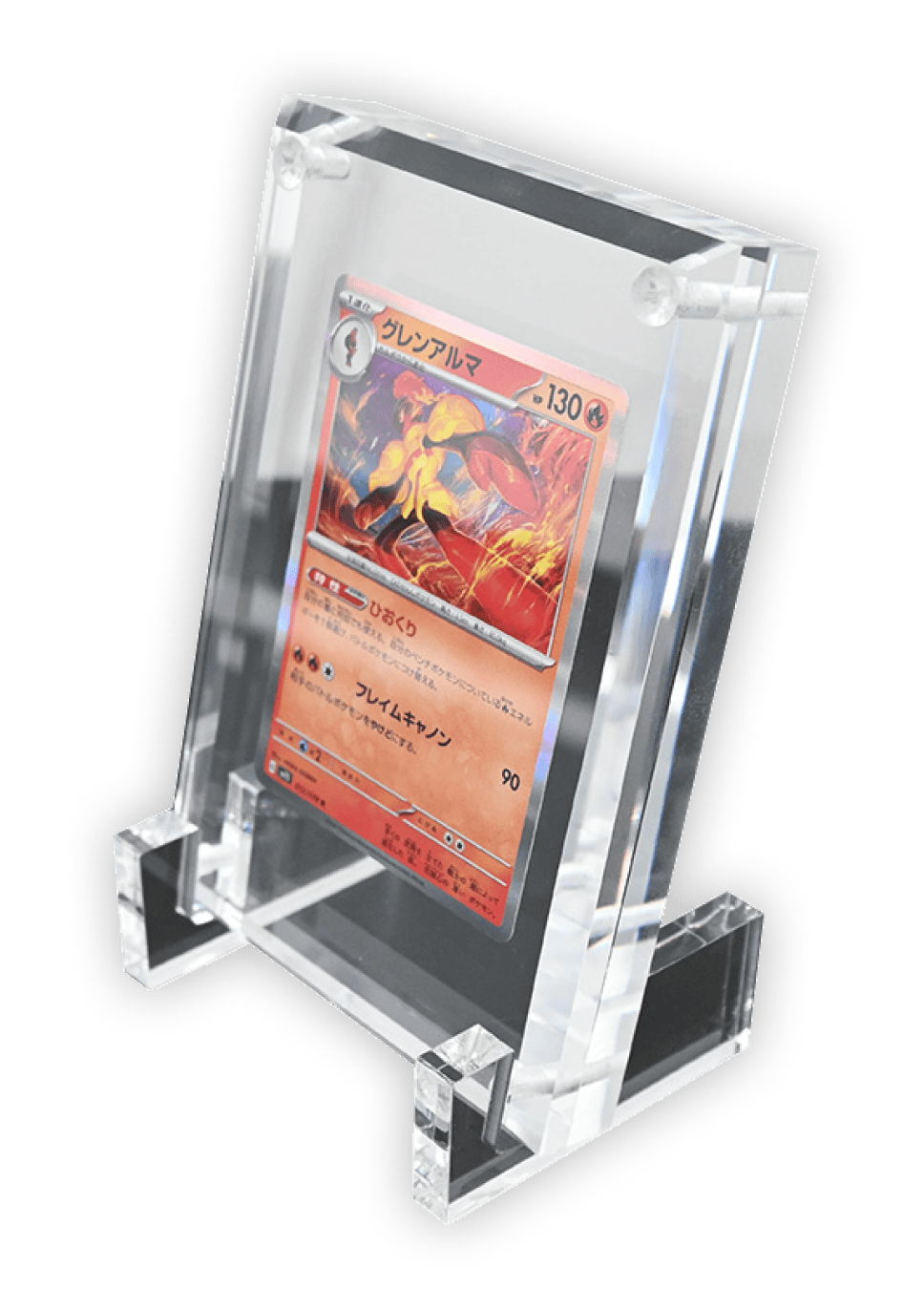 トレーディングカードの観賞用ケース。UVカット効果のある特殊なアクリル板を使用。日焼けの軽減・防止ができるので変色するのを気にせずに、お気に入りのカードが飾れます。