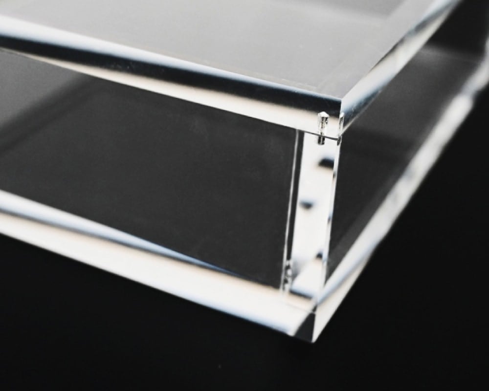 贅沢な8〜10mm厚の高透明度アクリルを使用した、高級感のあるコレクションケース。